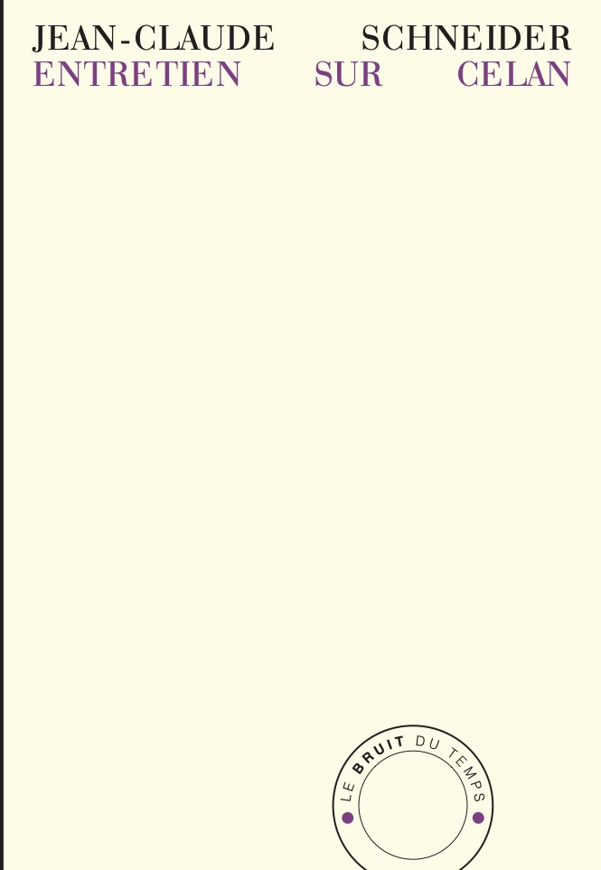 Les pages de cet entretien sur Celan, publié une première fois aux éditions Apogée en 2002, sont nées, quarante ans après, de cette rencontre et ce projet qui n’aboutit pas au livre escompté, mais qui marque, néanmoins pour Jean-Claude Schneider — qui a lui-même publié ses premiers poèmes au Mercure de France en 1958 — le début « d’une conversation infinissable avec les seuls poèmes, enfin renouée et sans cesse recreusée ». Le livre est donc à la fois le recueil, longtemps différé à cause du malentendu initial, des traductions de poèmes de Celan par Schneider et un commentaire de ces poèmes, une lecture que l’on peut dire « fraternelle », si l’on connaît l’œuvre poétique de Schneider et en particulier de son dernier recueil Récitatif en ruine que nous publions parallèlement.