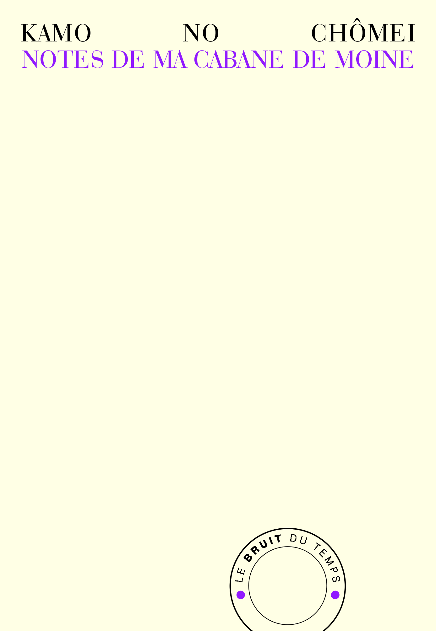 Récit autrobiographique d’une limpide simplicité, « mémorial plein de fraîcheur et de sentiment que l’on pourrait comparer aux livres de l’Américain Thoreau », comme l’a décrit Claudel, les Notes de ma cabane de moine, rédigées en 1212, s’ouvrent par le constat de l’universelle précarité de la vie humaine.