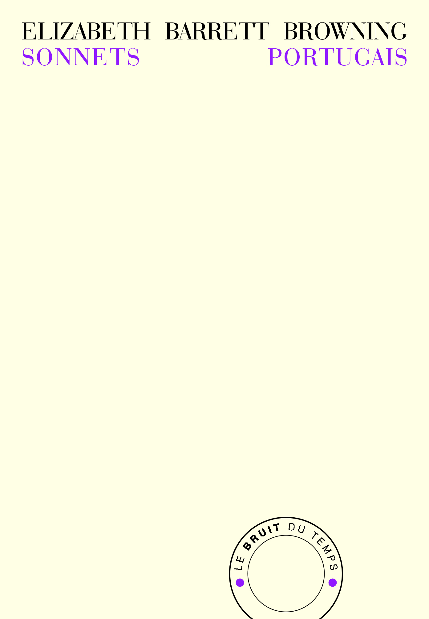 Elizabeth Barrett écrit les Sonnets portugais pendant les vingt mois qui séparent la première lettre reçue de Robert Browning, le 10 janvier 1845, de leur mariage en septembre 1846. Elle attendra plusieurs années avant de les montrer à son mari. Aussi célèbres en Angleterre que les sonnets de Shakespeare, ces poèmes d’amour appartiennent pleinement au mythe, et c’est à ce titre que Rilke ira jusqu’à apprendre l’anglais pour les traduire. Claire Malroux écarte le voile de la légende, et montre que l’authentique poète qu’était Elizabett Barrett « ne s’est pas perdu dans la femme ». Ces Sonnets sont le lieu d’une conversion : elle doit y chasser la mort et la résignation dans laquelle se complaisait jusque-là sa poésie, pour faire place à l’avènement d’un sentiment vrai, partagé, charnel. D’où la modernité de ces poèmes, traversés de nombreux mouvements, interrogations, contradictions sous le frémissement desquels la rigidité de la forme se défait, le langage corseté se délie. Le goût de la sensation vraie, qui se traduit par une grande liberté et audace de parole, fait d’elle une iconoclaste consciente (Virginia Woolf).